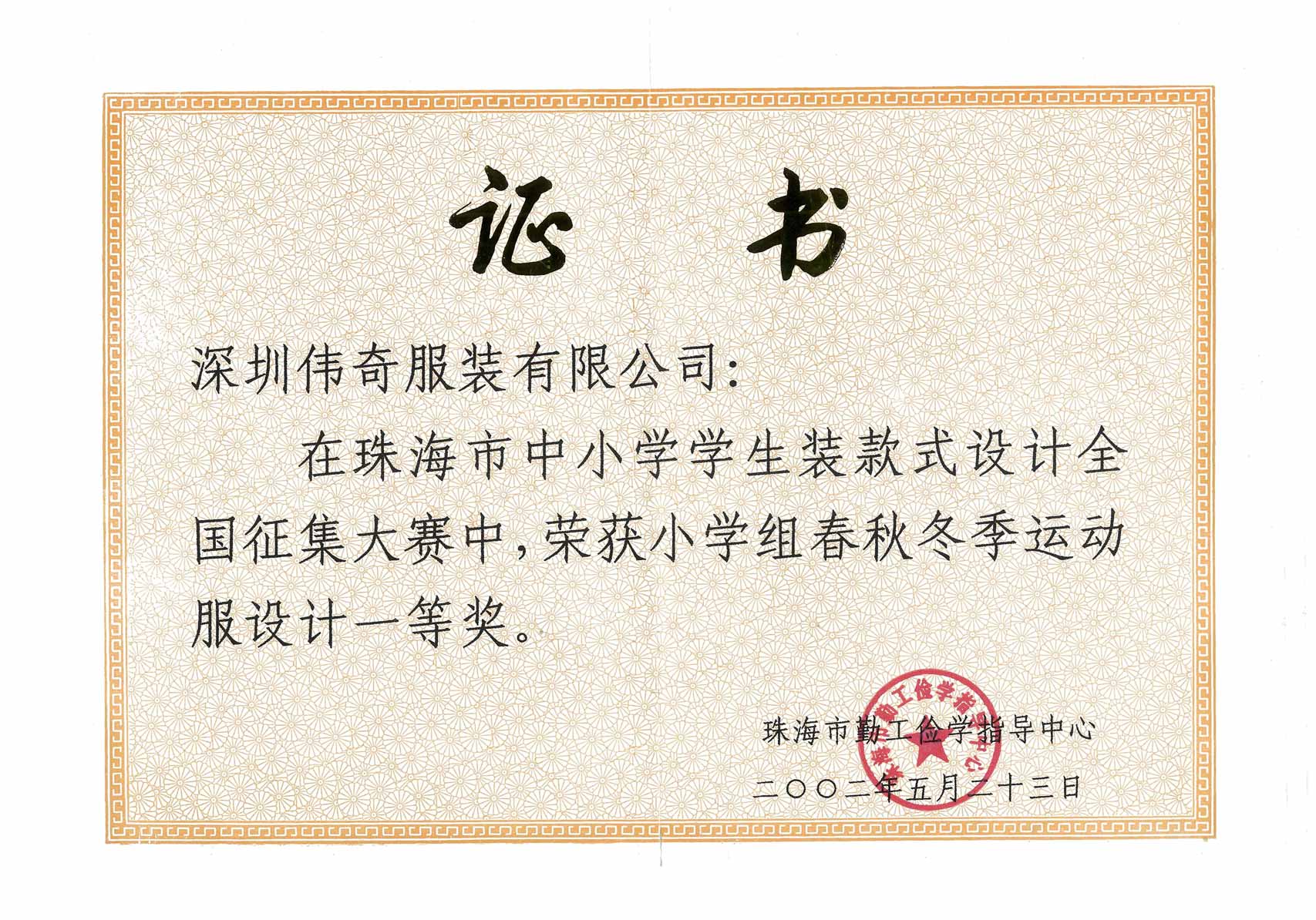 • 珠海市服装设计一等奖